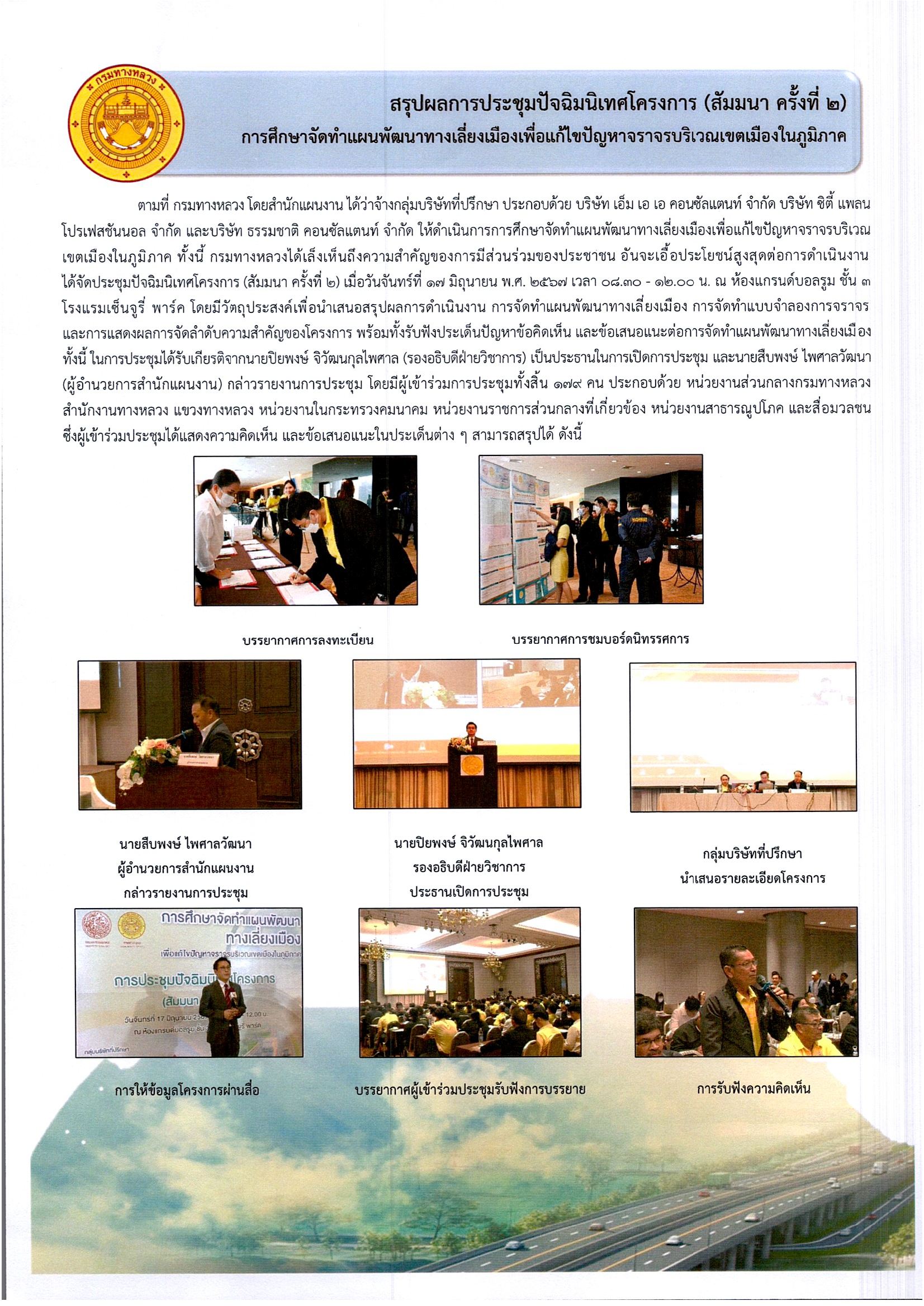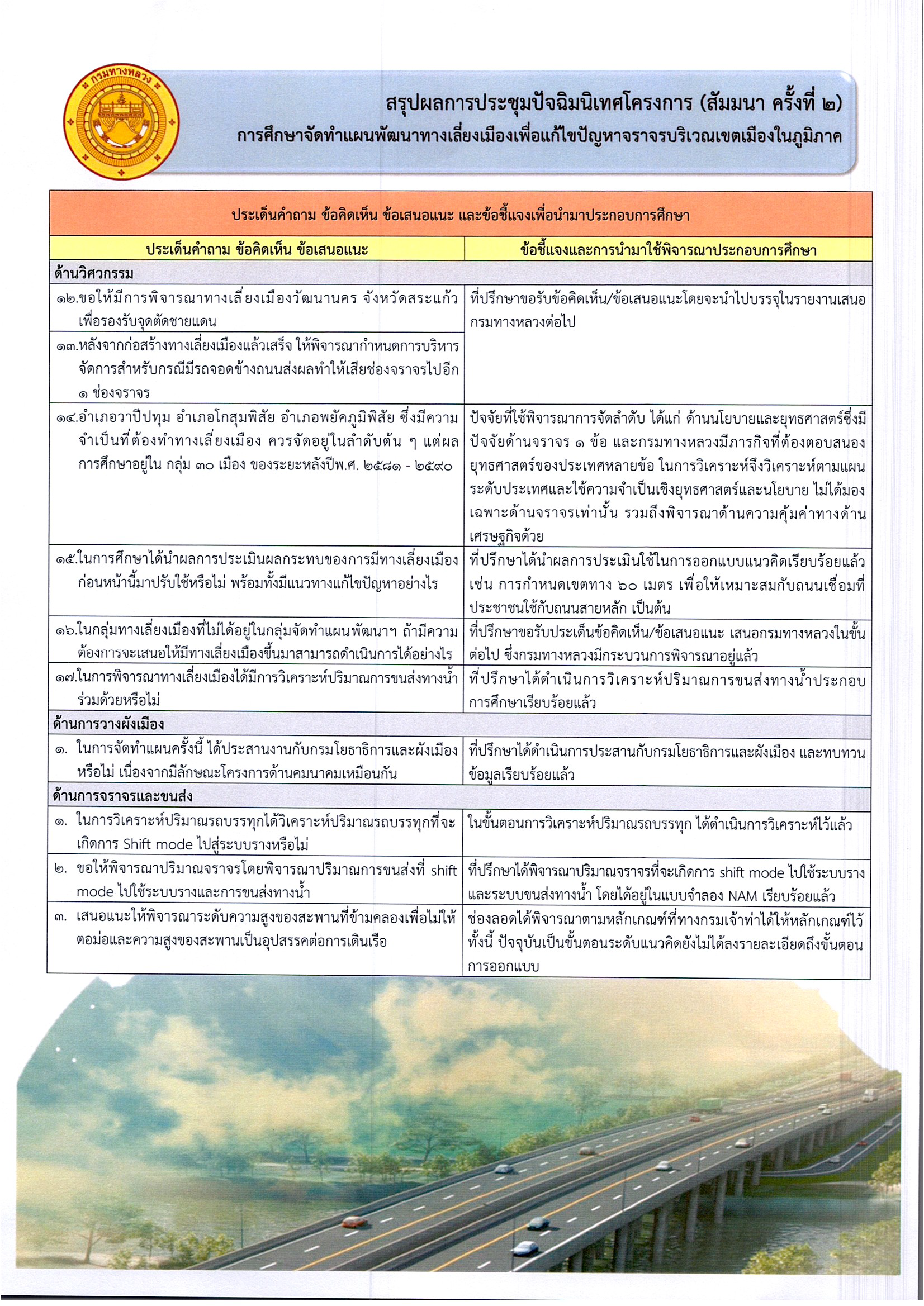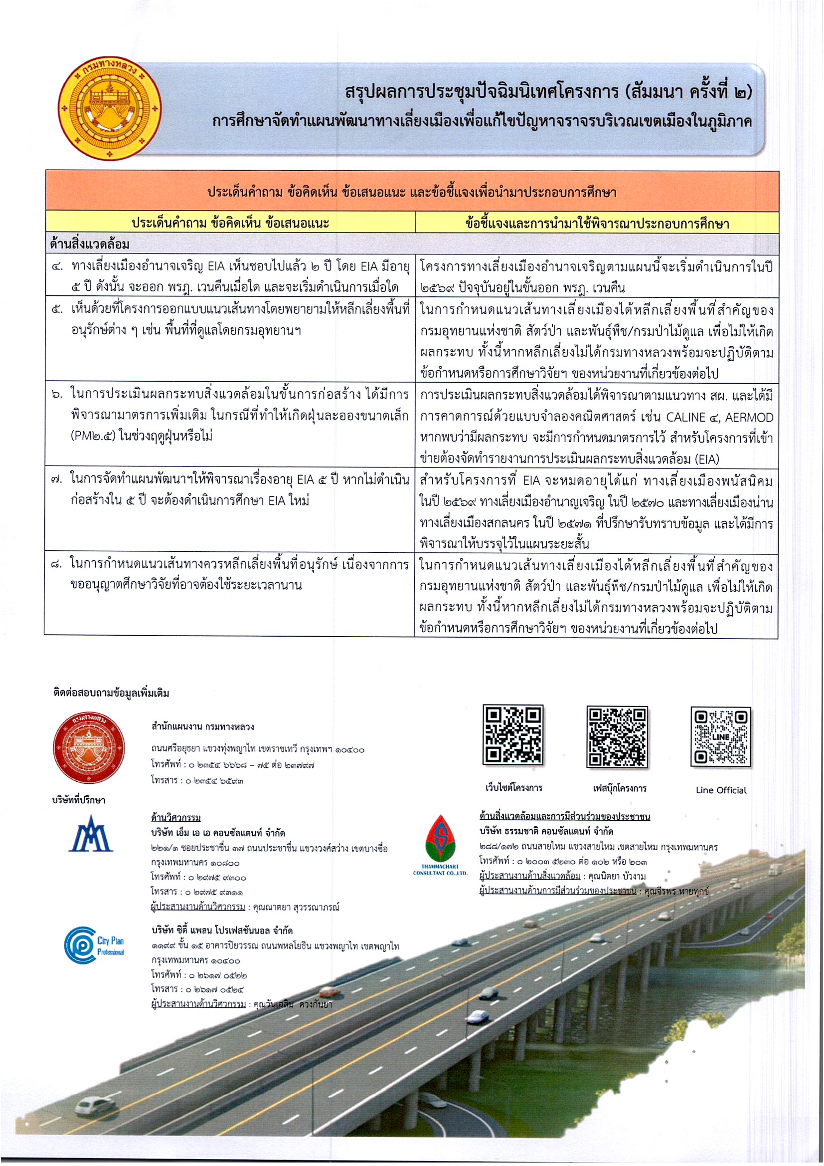ดังนั้น กรมทางหลวง จึงได้สรุปผลการประชุมดังกล่าว เพื่อประชาสัมพันธ์ให้ทุกภาคส่วนที่เกี่ยวข้องได้รับทราบ ทั้งนี้ เพื่อให้การพัฒนาโครงการเกิดประโยชน์สูงสุดต่อไป