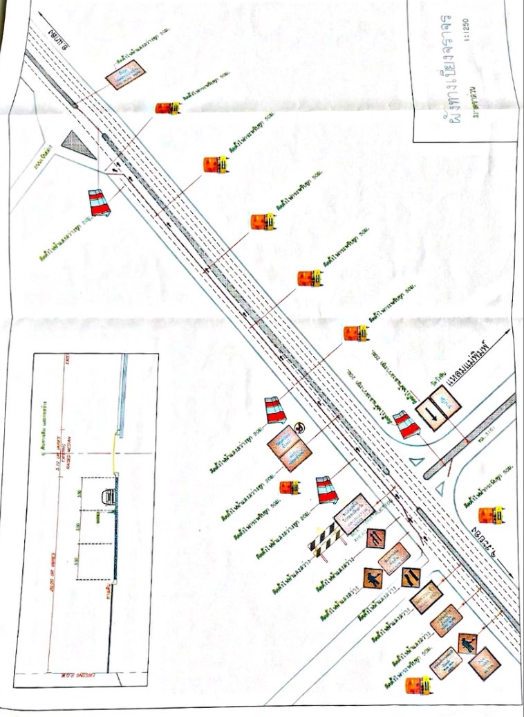ทำการเบี่ยงการจราจรในทางหลวงหมายเลข ๓ ช่วงระหว่าง กม.๒๐๘+๔๐๐ – กม.๒๐๘+๔๕๐ ด้านซ้ายทาง เป็นระยะทางประมาณ ๕๐ เมตร ในวันจันทร์ ที่ ๑๓ พฤษภาคม ๒๕๖๗ เพื่อติดตั้งการก่อสร้างงานท่อระบายน้ำ