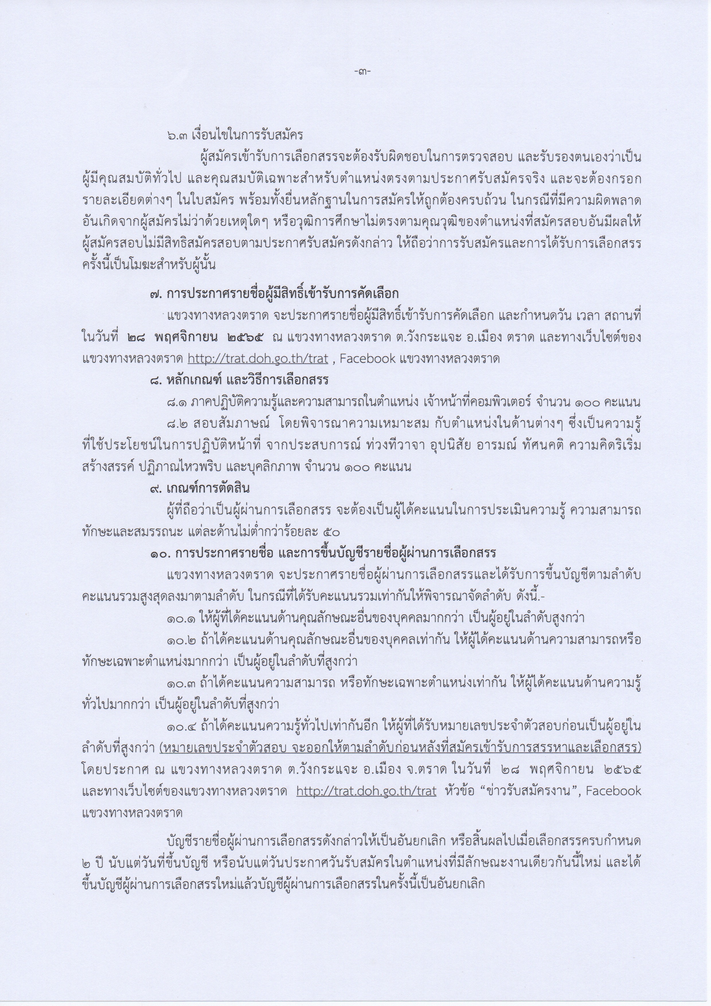 การรับสมัคร ให้ผู้ประสงค์จะสมัครยื่นใบสมัครด้วยตนเองได้ที่งานสารบรรณ แขวงทางหลวงตราด ตั้งแต่วันที่ 7-18 พฤศจิกายน 2565 ในวันเวลาราชการ