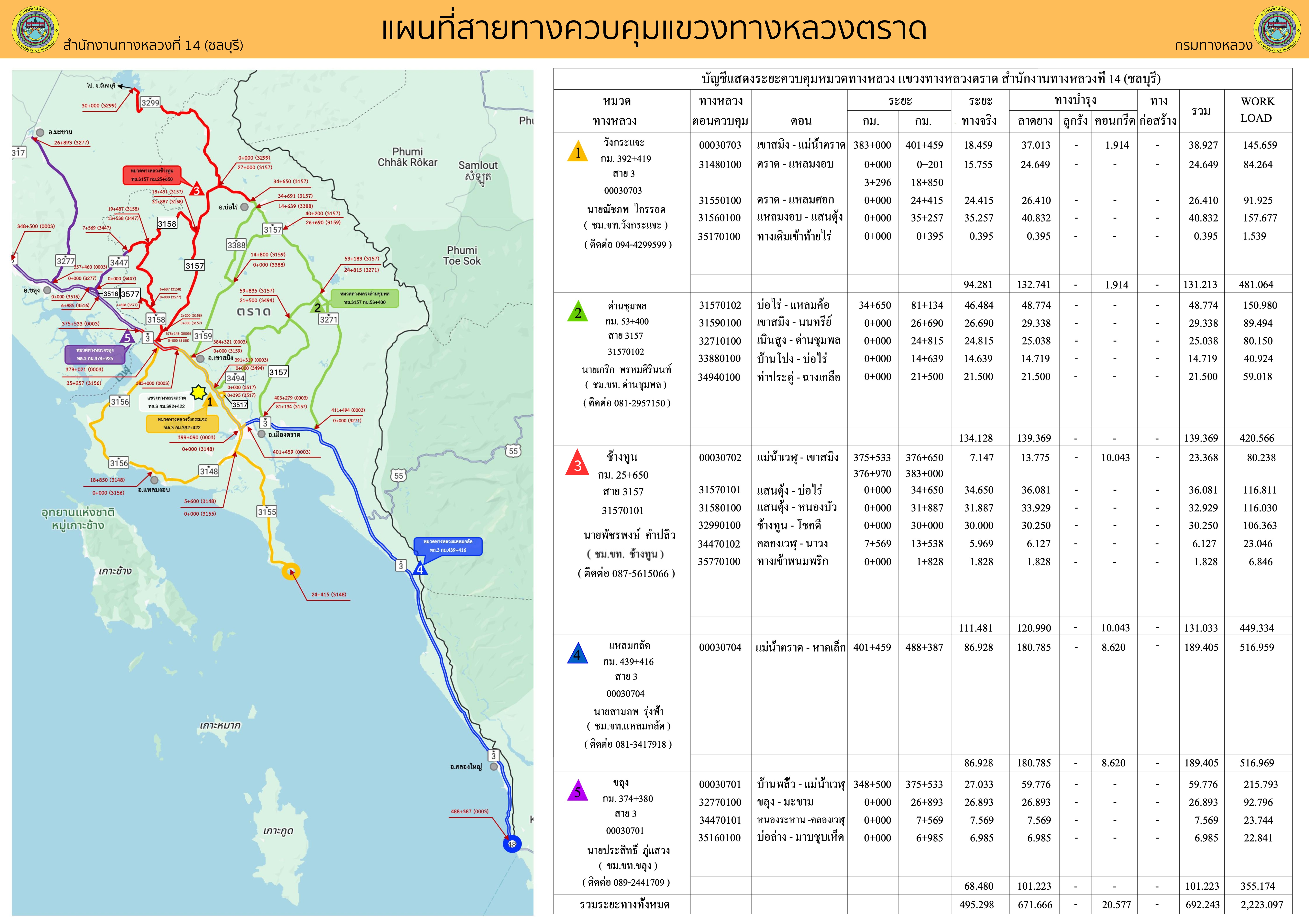 | สายทางควบคุมหมวดทางหลวงวังกระแจะ | 222 | ดาวน์โหลด |